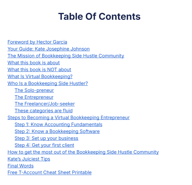 This ebook is loaded with hyperlinked resources both free, cheap and even higher end resources that all can either serve the same purposes or VERY different purposes and clientele. If you’re looking for a guide to find not only if bookkeeping is for you, but also a community, resources and someone super relatable this is the book for you!